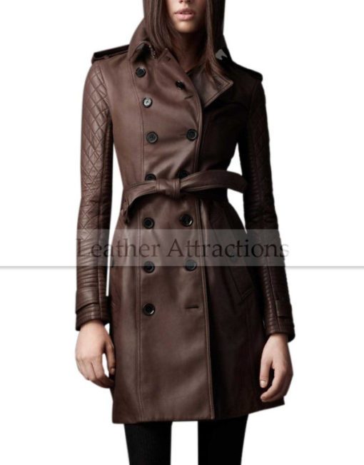 Designers Quilted Sleeves Women 3-4 length leather trench Coat