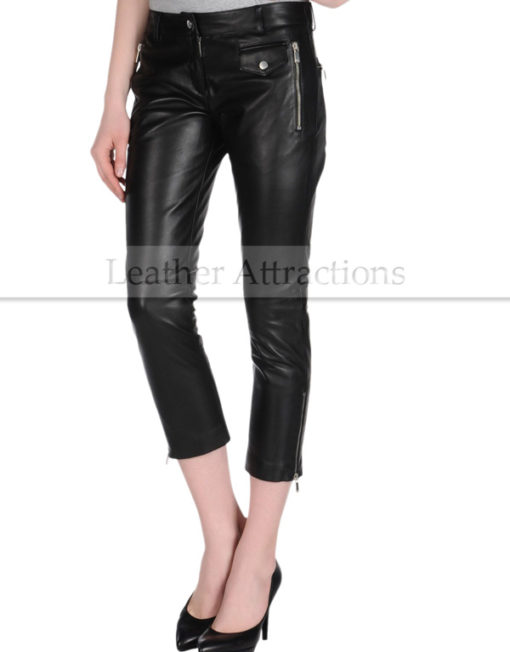 Women Motor cycle Caprice Black Leather Pants